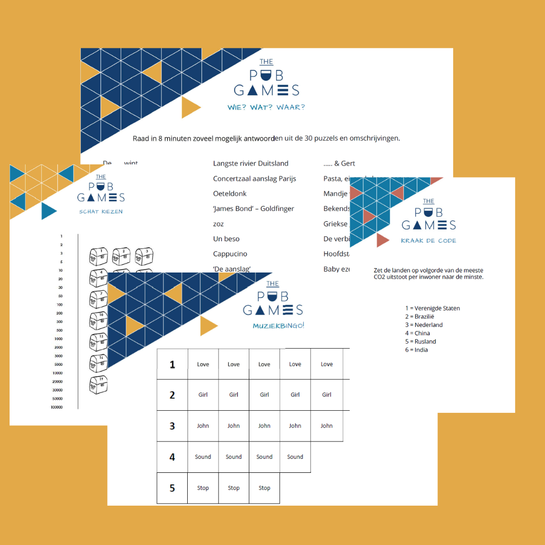 Na het spelen van vele pubquizzen en escaperooms was het toch niet helemaal naar mijn zin. Bij de pubquiz verveelde ik me en een escaperoom gaf me geen gezelligheid. Daarom ben ik op zoek gegaan naar het beste van beide en dat is The Pub Games geworden. Een spel met verschillende interactieve spelrondes en die zich flexibel laat aanpassen naar het evenement.
